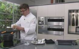 01 Octubre 2014 01/10/2014 - "Raviolis de patata i gambes a la brasa amb oli de fruita seca i suc de rostit"